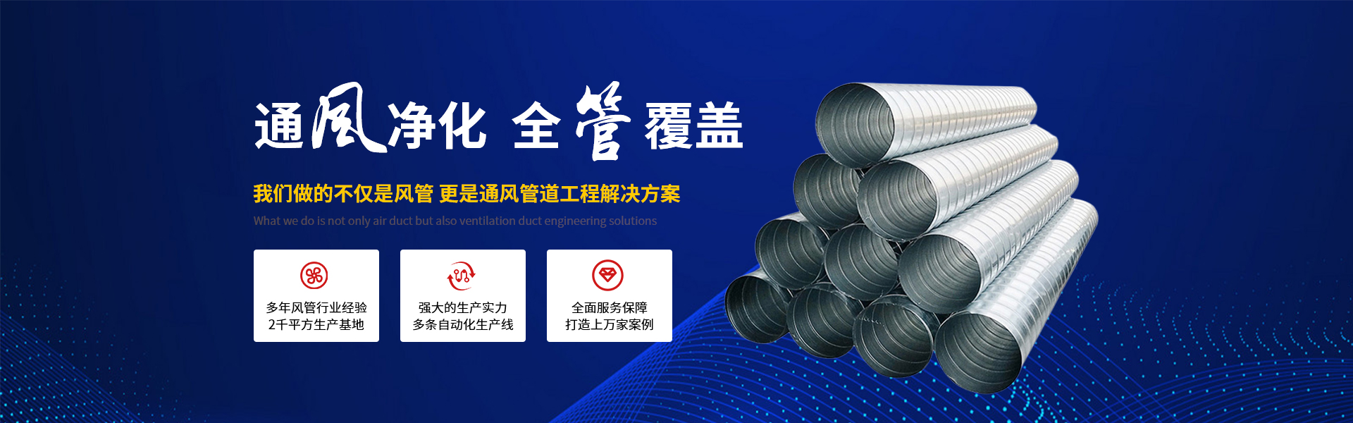 從事不銹鋼風管、螺旋風管、碳鋼風管、PP風管、共板法蘭風管、角鋼法蘭風管及環保設備和通風工程的生產廠家